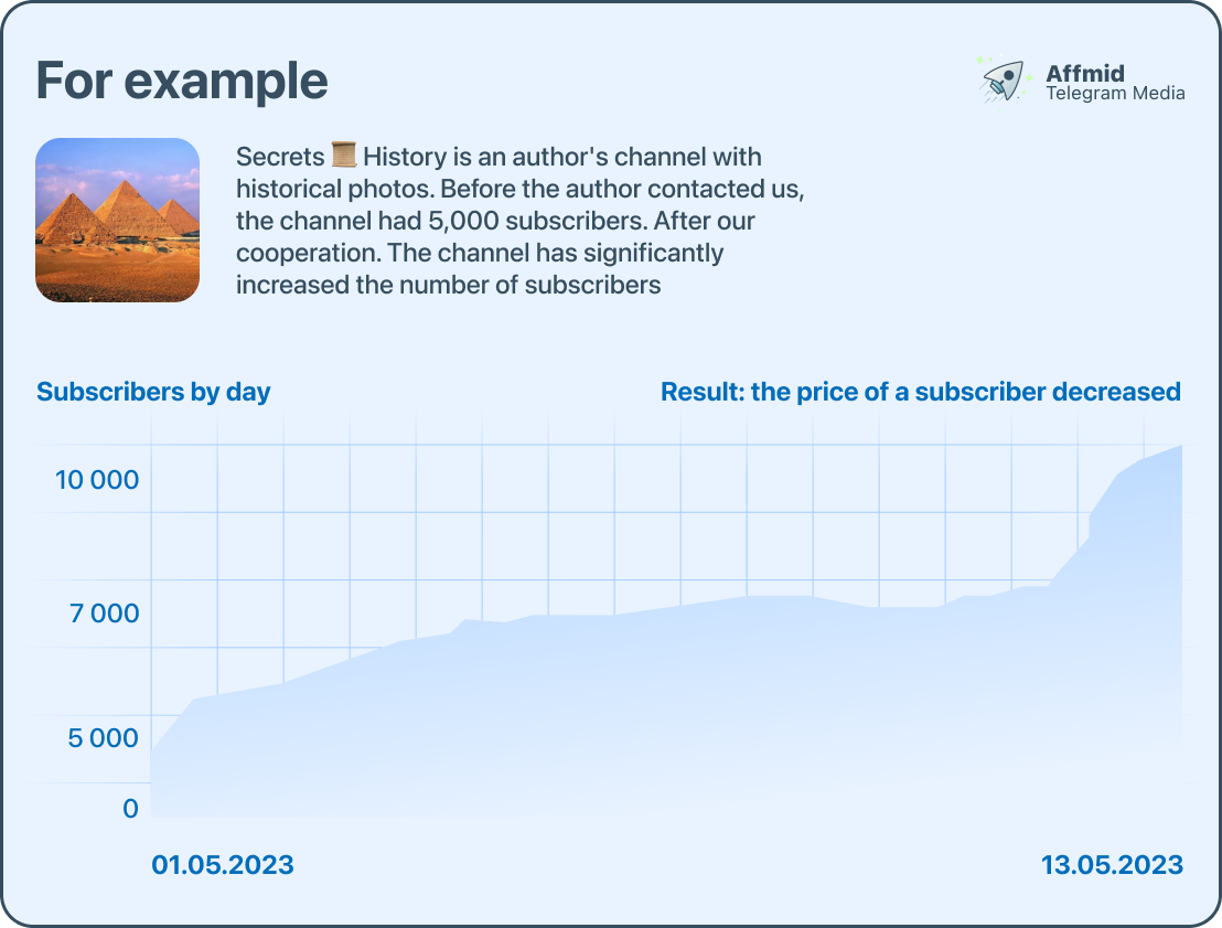 Secrets 📜 History is an author's channel with historical photos. Before the author contacted us, the channel had 5,000 subscribers. After our cooperation. The channel has significantly increased the number of subscribers